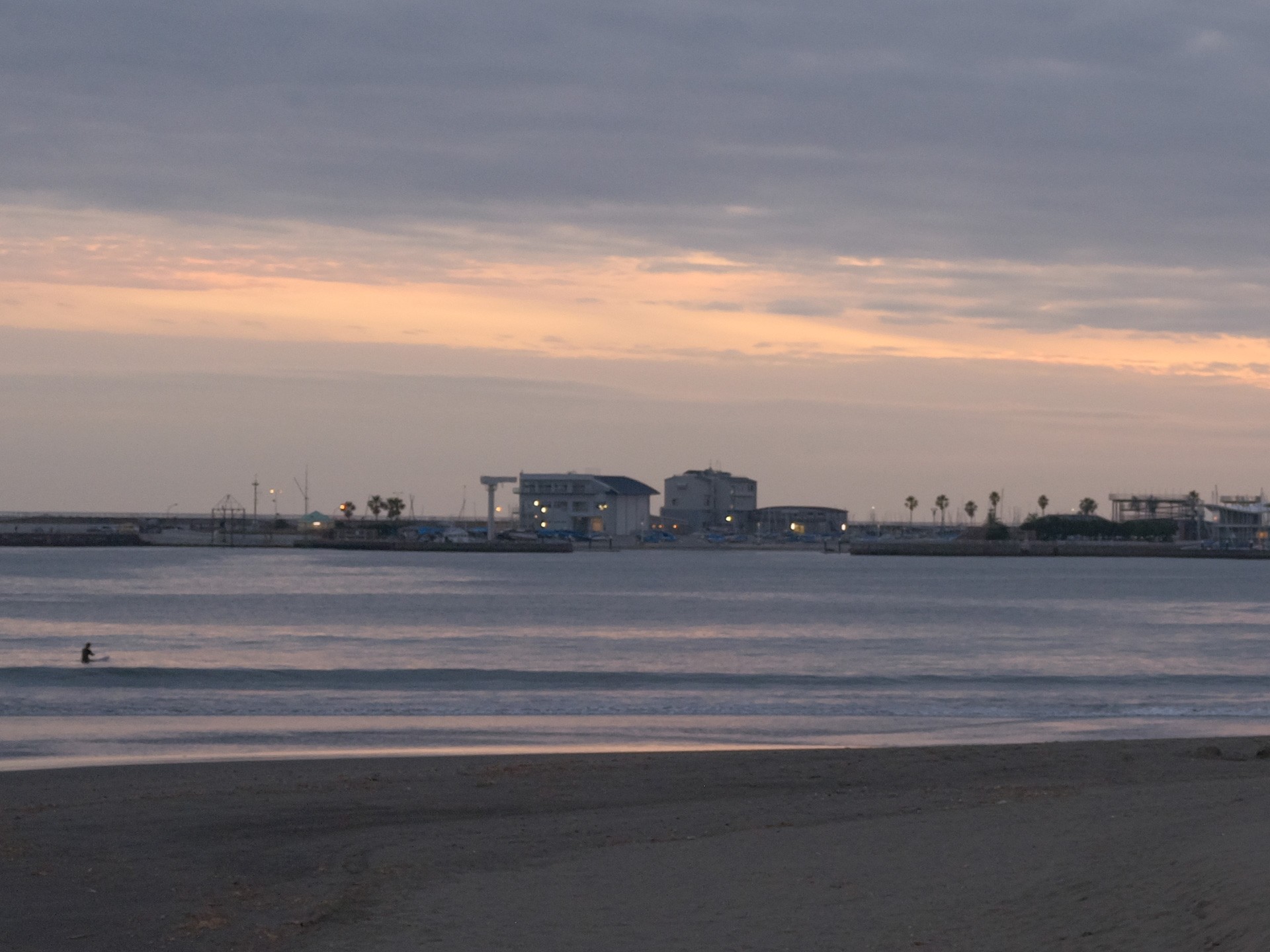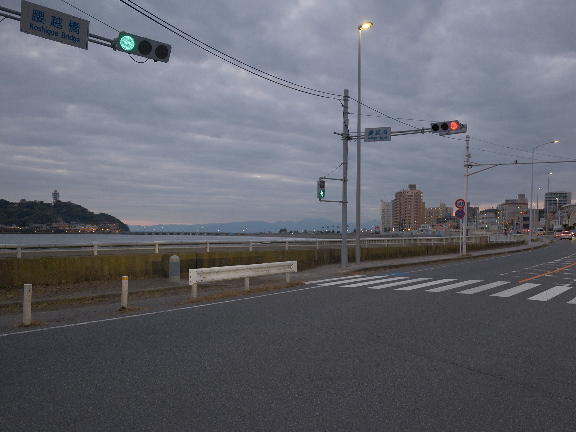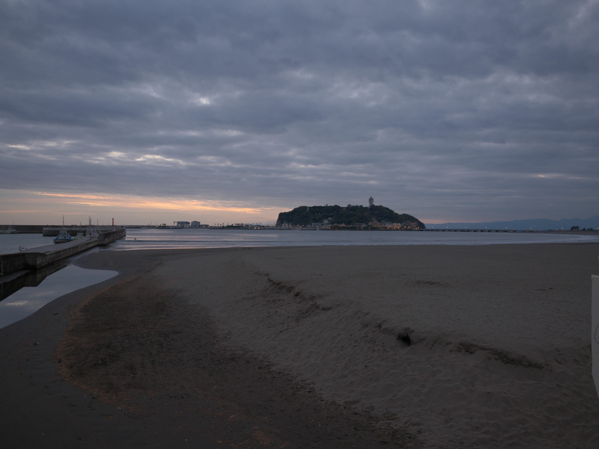 腰越漁港駐車場に戻る途中、江ノ島が見えたので撮影しました。空の色に惹かれました。